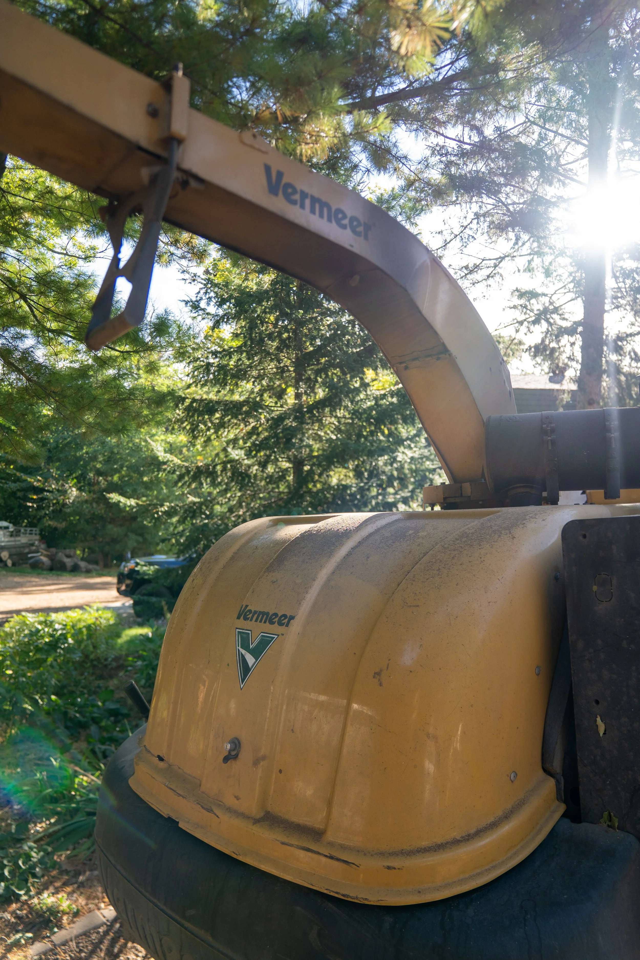Crew uses wood chipper to remove tree stumps safely and efficiently.